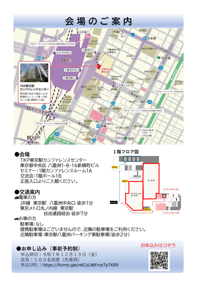 ★申込方法 ≪申込≫ 下記URLまたは二次元コードからお申込みが可能です。 https://forms.gle/nKCsLNtFrceTpTK89 ≪申込期限≫ 令和7年(2025年)12月19日(金)まで |
