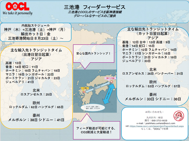 令和7年8月23日、OOCL社と井本商運株式会社が連携して三池港と諸外国を結ぶ国際フィーダー航路が開設されました。